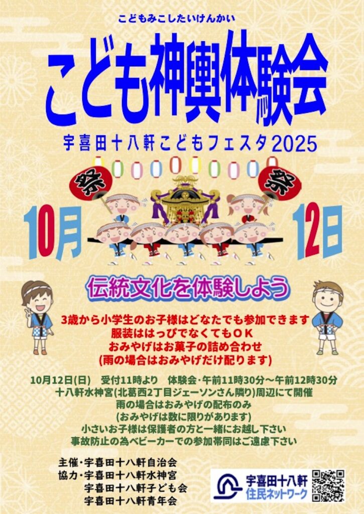 また、併催イベントとして「子ども神輿体験会」も行われます。