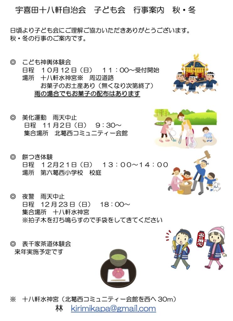 日頃より子ども会にご理解ご協力いただきありがとうございます。 秋・冬の行事のご案内です。